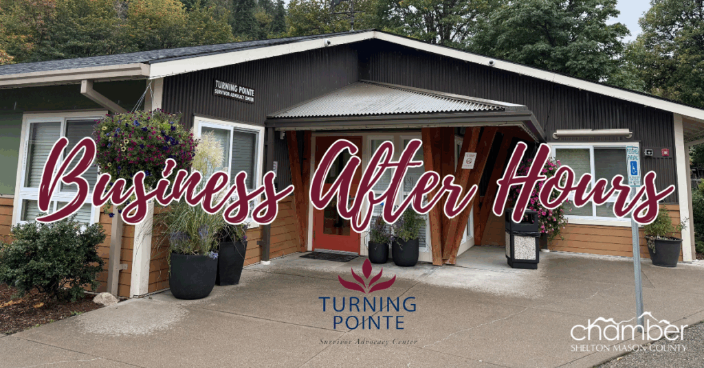 The Chamber invites you to join us on October 8 at Turning Pointe Survivor Advocacy Center, 210 Pacific Ct, Shelton. Guests will enjoy hors d’oeuvres and champagne from Wild & Woodsy Catering and a chance to win a door prize. The Turning Pointe team will share the nonprofit’s impactful work, highlight the upcoming EmPOWER Dinner & Auction, and present ongoing opportunities to support survivors—during Domestic Violence Awareness Month and all year long. This year also marks Turning Pointe’s 25-year anniversary of service to our community!